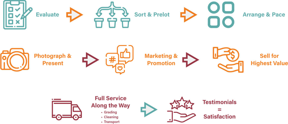 Getting top dollar isn't just about what you sell, it's where and how you sell it. From live auctions to private buyers to online spotlights, we tailor your go-to-market strategy based on what will work best for your unique collection. With our reach and know-how, we'll connect your items with the collectors who are already looking for them.