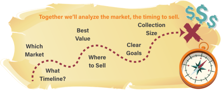 Our dedicated team of experts prides themselves on providing transparent, fair, and market-value evaluations, allowing you to make informed decisions about your valuable collectibles. Our marketing team will take over from there, finding just the right buyer for your collection.
